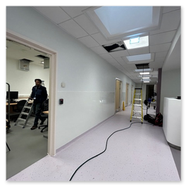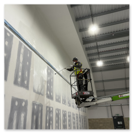 - Protection: Floors, furniture and adjacent areas sheeted and masked.